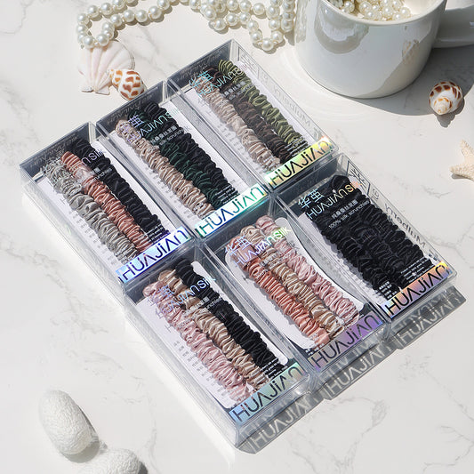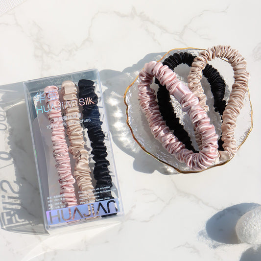 Pink/Caramel/Silver/Black 2cm silk scrunchies sets